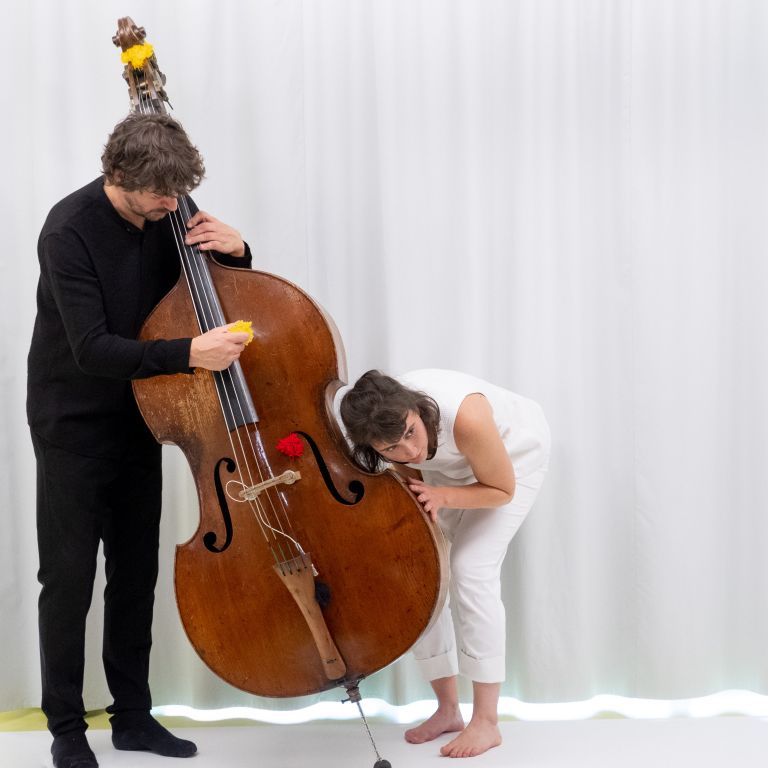 ⥀ est un concert d’objets pris dans le tourbillon d’une rotation qui se déploie et nous installe face à un paysage sonore d’intérieur.