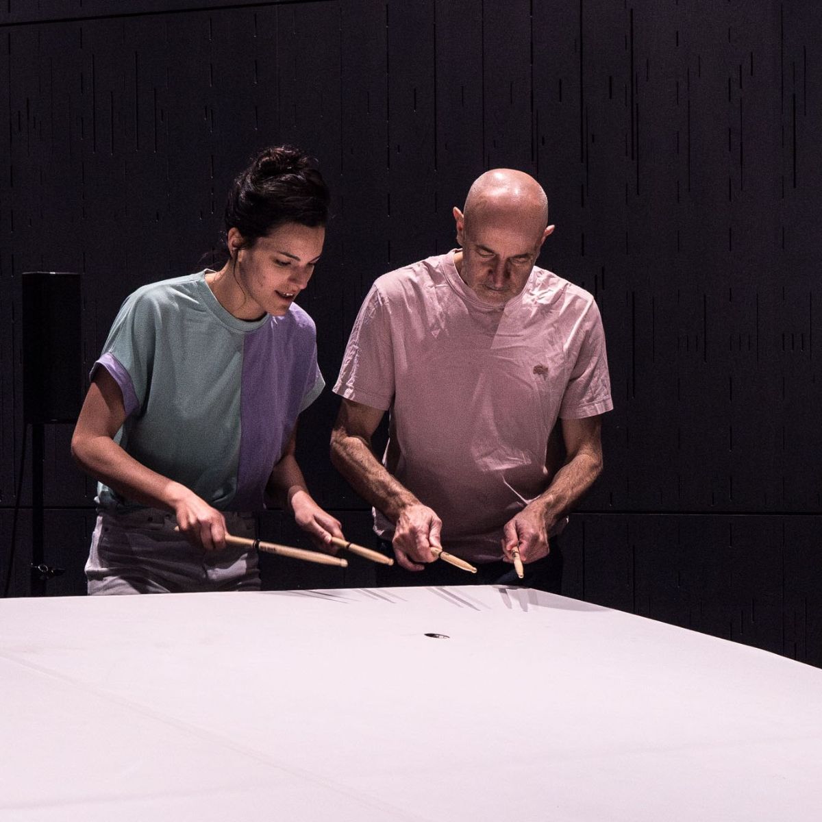 Une discussion dansée et rythmée sur la notion du temps. Deux personnages à la dérive des mots et des images. Un plateau joueur et philosophe, vacillant. Lieu de tâtonnement, apesanteur inhabituelle. Il devient espace de questionnement. Un jeu de rythme. Coup de baguette, coup de génie, coup de théâtre, coup de poing, coup tordu, coup du sort.